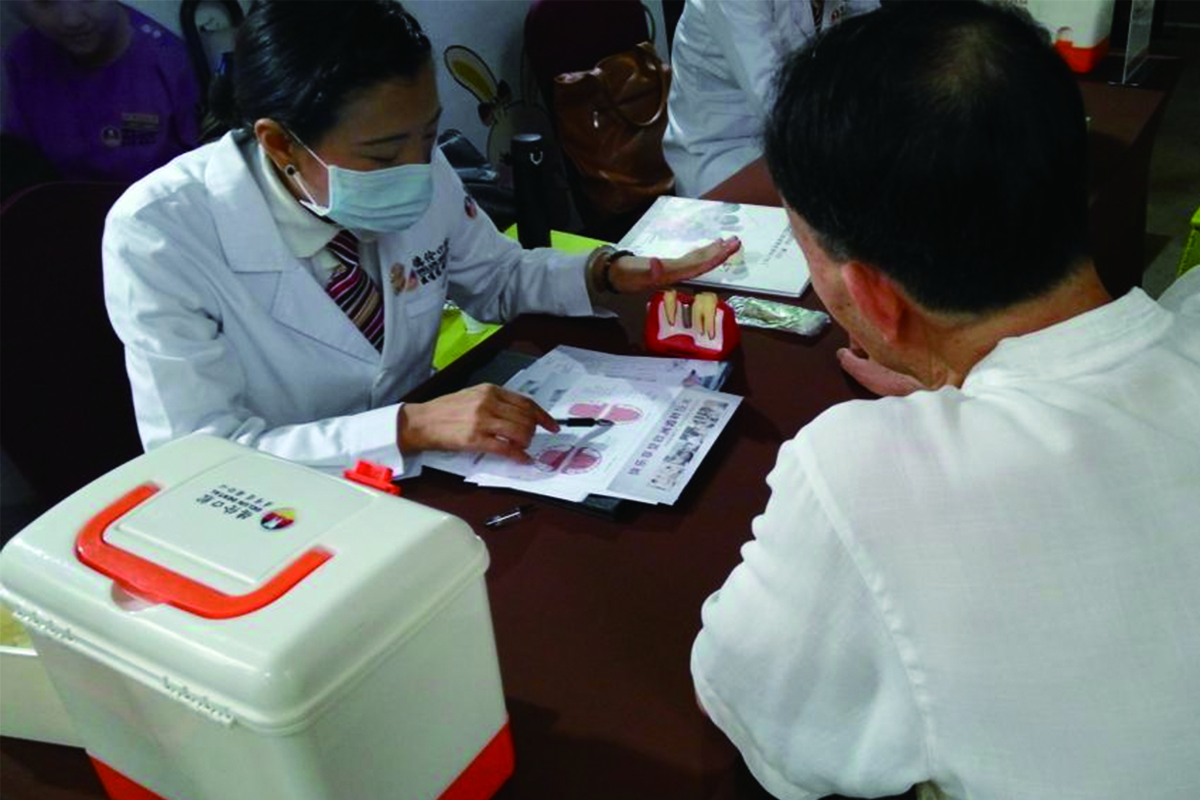 義診現(xiàn)場(chǎng),醫(yī)生助理正在幫助居民檢查牙齒,并以通俗易懂的語(yǔ)言為其講解口腔知識(shí)、日常護(hù)理要點(diǎn)等。