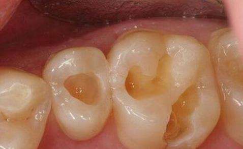 還有一種特殊的情況,就是蛀牙表面沒有牙洞,也不發黑,但是表面有一些黃色的軟性物質,而牙齒里面早已齲壞嚴重。